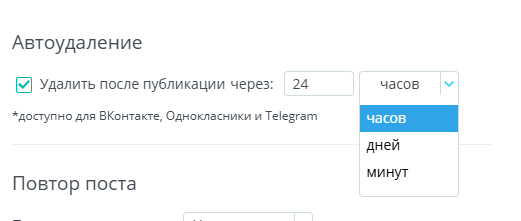 Добавить возможность автоматического удаления постов при публикации через пакетную загрузку и кросспостинг