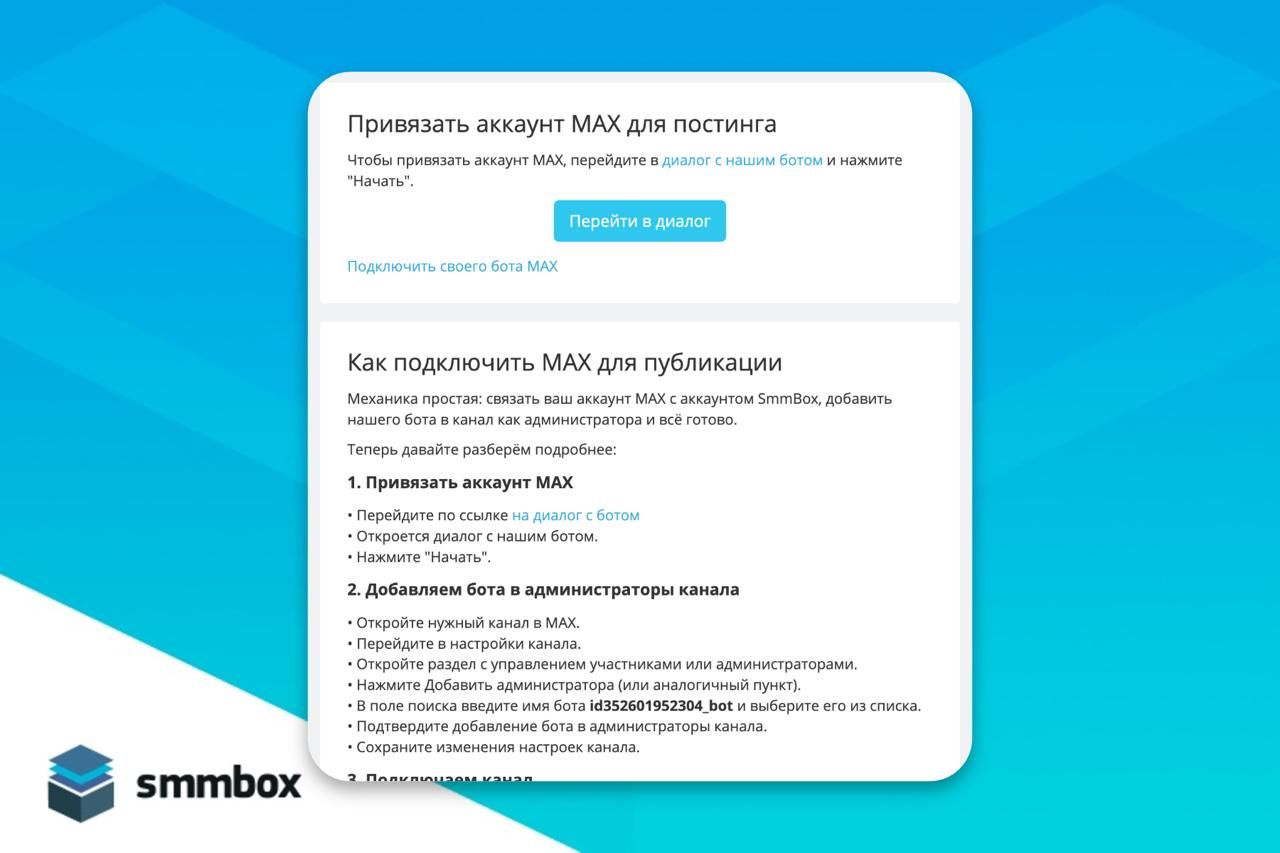 В SmmBox появилась возможность подключить свой канал MAX через нашего бота.