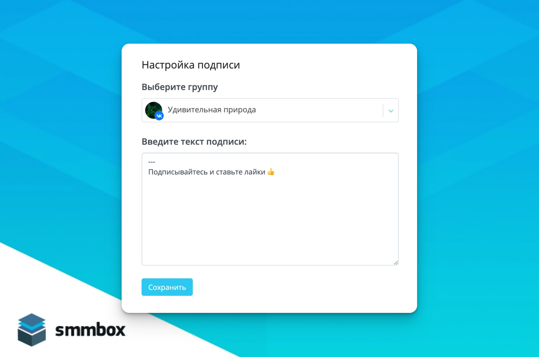 Можно создать текстовую подпись и автоматически добавлять ее к публикуемым постам.Подпись добавится в момент публикации.Для Telegram поддерживается Markdown.