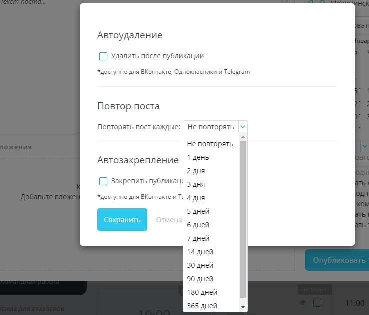 Если нужно, например, сделать повторы каждые 15 или 17 дней и т.д. Надо предусмотреть возможность ввести количество дней вручную.